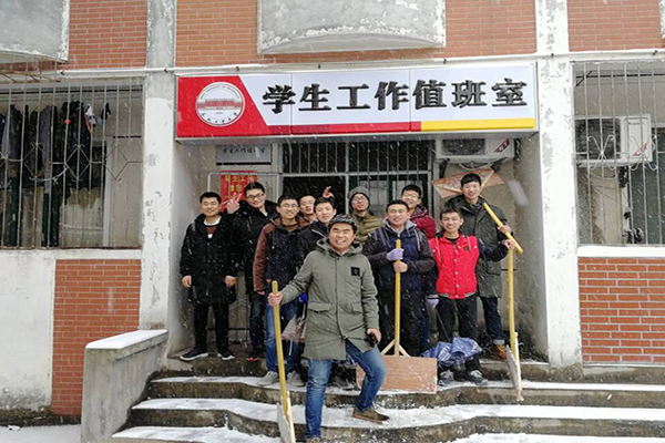 铲雪除冰过程中,同学们手持铁锹、扫帚、竹竿等清扫工具,一起挥洒汗水,奉献力量,分工明确,默契配合,对校园主干道、学校宿舍区以及食堂周边地区的积雪进行清扫,铲子与地面的敲击声奏出最美的劳动交响乐。虽然室外寒气袭人,却丝毫挡不住教职员工和同学们铲雪除冰的干劲,师生们的头上落满了雪花,手和脸都冻得通红,也没有影响大家的热情和工作效率,鞋子里、衣领里不时有雨雪侵扰,可他们一直微笑着,互相之间还暗中进行除雪比赛,越干越有劲。