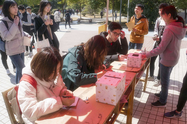 3月6日,机械工程学院“慢递邮局”活动在翡翠湖校区一食堂广场进行,吸引很多同学积极参与。