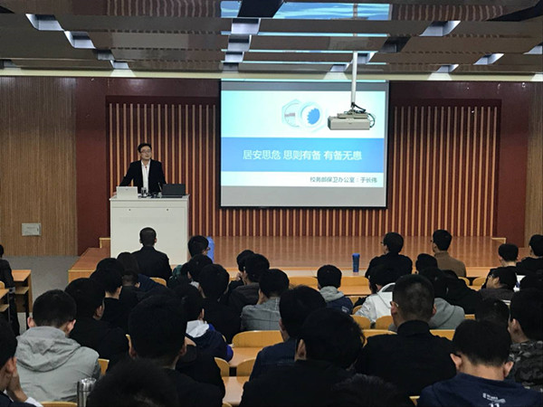 为加强学院全体师生安全思想意识,10月17日晚,我校保卫办于长伟老师在格物楼二楼报告厅作题为“居安思危、思则有备、备则无患”的安全意识讲座,机械工程学院相关负责老师,高年级辅导员,班主任老师及两百余名学生骨干聆听了讲座,报告会由郑召丽主持。