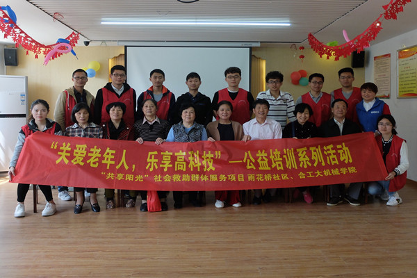 为弘扬尊老、敬老、爱老、助老的中华传统美德,培育机械学子的社会责任心,5月11日下午,机械工程学院研究生会与摩擦学研究所党支部志愿者们前往合肥市雨花桥社区开展“关爱老年人 乐享高科技”主题敬老志愿服务活动。