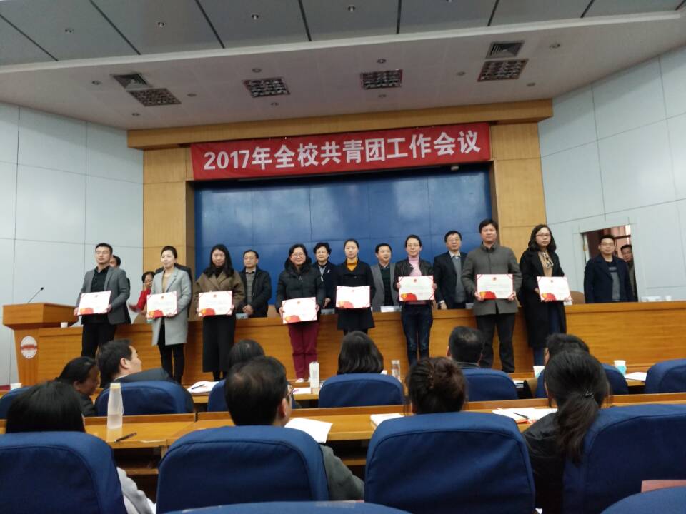 为鼓励共青团一线工作者和广大团员青年学生总结经验、再创佳绩,会议上表彰了在过去一年中取得优异成绩的相关集体和个人。英国上市公司365共青团工作在表彰中荣获佳绩。在挑战杯选拔赛中英国上市公司365荣获优秀组织奖,学生团队荣获二等奖;在安徽省双百大赛中英国上市公司365荣获优秀组织奖;三下乡暑期社会实践评比表彰中英国上市公司365荣获“十佳社会实践基地”、“十佳示范团队”、“十佳调研报告”、“十佳优秀宣传报道”等奖项,在暑期社会实践专项行动中,英国上市公司365团队荣获全国优秀实践团队和镜头中的三下乡入围奖,尹佳婧老师荣获优秀指导教师称号;在基层团委和团学组织年度达标评比和五四评比中,英国上市公司365荣获五四红旗团委、A级学生会等荣誉称号,吴其林、侯静、尹佳婧等几位老师分别荣获优秀团委书记、优秀研究生会秘书长、优秀学生会秘书长等荣誉称号。