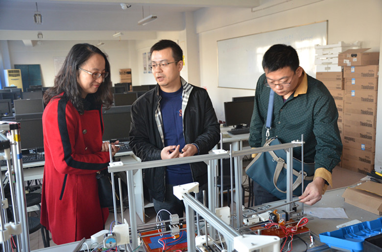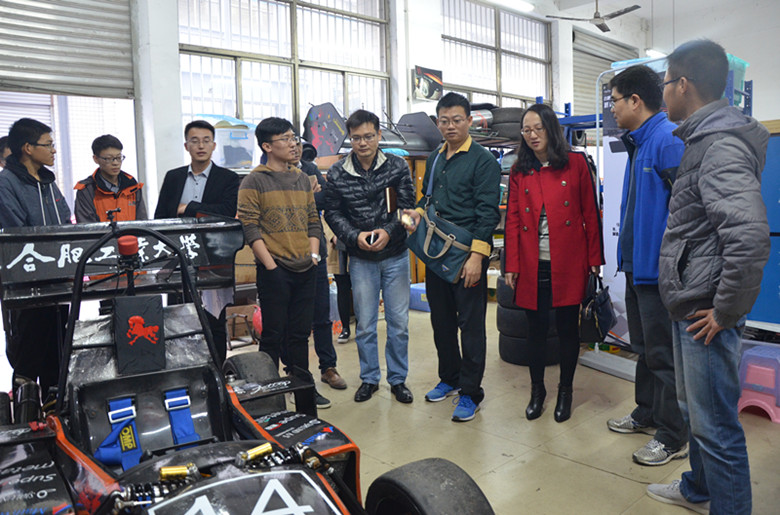 朱政红老师对蔡茜主任一行的来访表示热烈欢迎,她向来宾介绍了我校和学院的基本情况,带领来宾参观了英国上市公司3653D打印实验室和观看了部分大学生科技创新团队作品展演,同时参观了汽车与交通工程学院的方程式车队工作室以及计算机学院可视化与协同创新实验室,项目相关负责老师对越影方程式赛车、大学生机械创新大赛、智能机器人、3D打印、VR技术等项目进行了重点介绍。