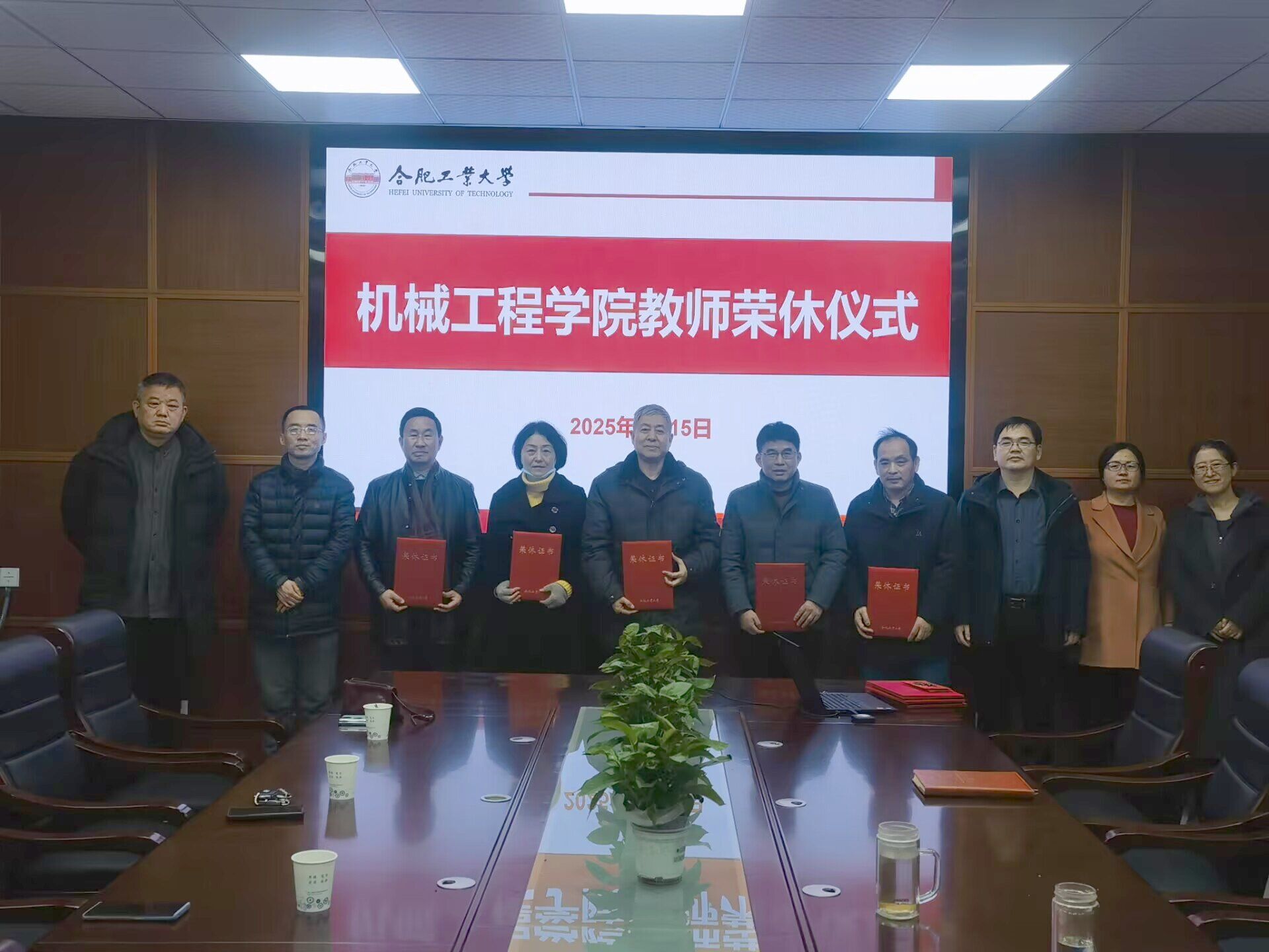 1月15日下午,机械工程学院在格物楼308会议室举行了2024年退休教师荣休仪式,向荣休老师致敬。荣休仪式由学院党委书记祖磊主持,学院领导班子成员出席了仪式。