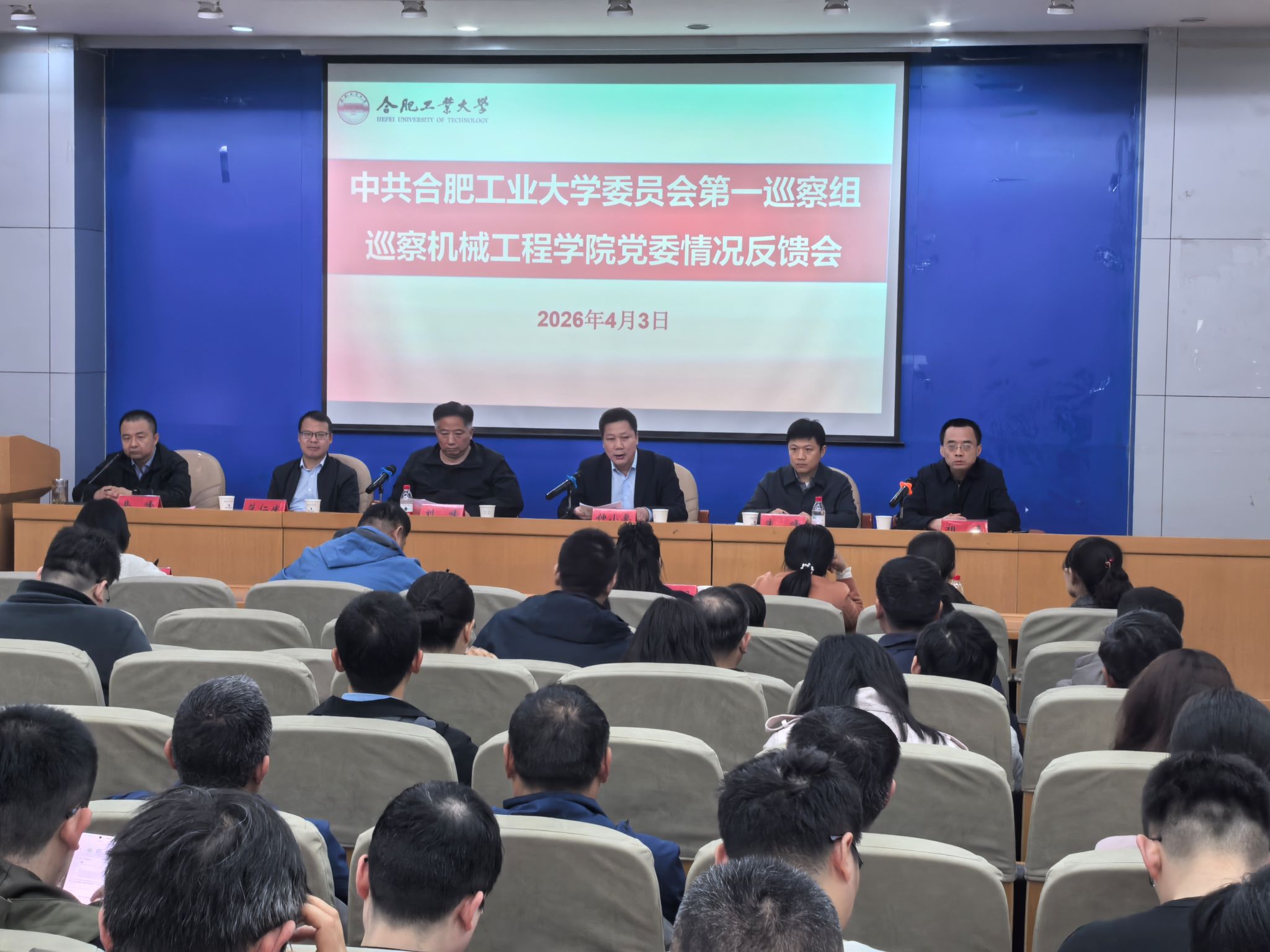 4月3日下午,中共合肥工业大学委员会第一巡察组巡察机械工程学院党委情况反馈会在屯溪路校区格物楼召开,校党委第一巡察组组长钟小要、副组长范仁庆、朱峰,校党委巡察...
