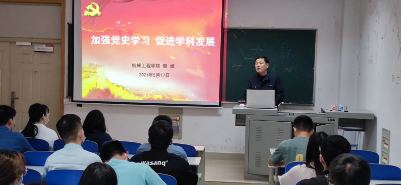 5月17日下午,机械工程学院研究生在屯溪路校区格物楼620开展“加强党史学习,促进学科发展”主题党课,该院院长訾斌教授为主讲人,该院机电、机器人研究生党支部及学院第65期发展对象班等70余名研究生党员参与。