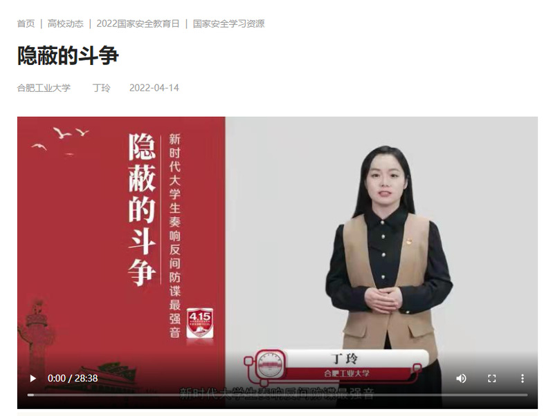 为全面贯彻落实总体国家安全观,4月1日至15日,英国上市公司365开展为期两周的大学生国家安全教育教学活动,学院2019级辅导员丁玲担任主讲人,为学院2019级本科生讲授国家安全课。讲授内容被录制为精品示范课程1项,在2022年国家安全教育教学视频征集与展示活动中被评为全国优秀示范教学视频,被教育部思政网学习资料库收录。