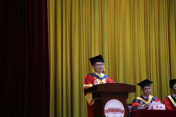 最后,陆林同志向2017届机械工程学院获得学士学位的同学表示热烈祝贺,并提出了殷切希望,他希望同学们要时刻不忘家国情怀,永葆创新的理念,坚持不断地学习,更要懂得感恩。希望同学们能够时刻关注母校的发展,在将来的工作生活中认真做人,踏实做事,勇于创新,成就梦想。