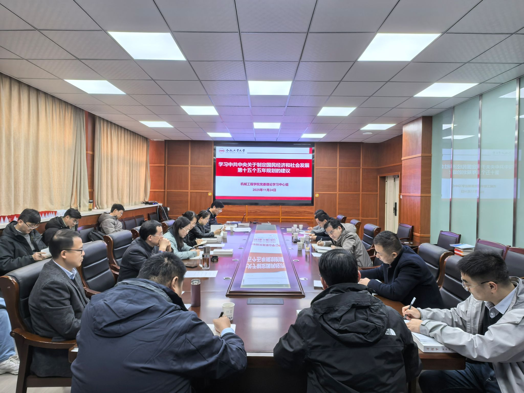 11月24日上午,机械工程学院党委理论学习中心组在格物楼308会议室召开扩大会议开展集中学习,学院党委书记祖磊主持会议,学院党委理论学习中心组其他成员参加学习,各系所主任和教工党支部书记参加学习。